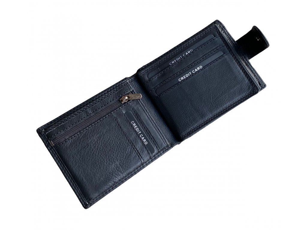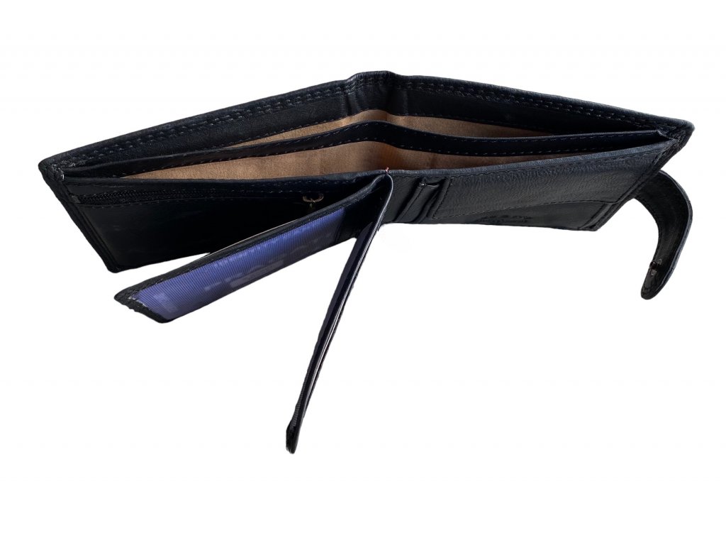 zelenočerná dámská kožená peněženka se zápinkou. Uvnitř najdete přihrádky na bankovky, platební karty a kapsičku na mince. Jsme přímým výrobcem a distributorem zboží