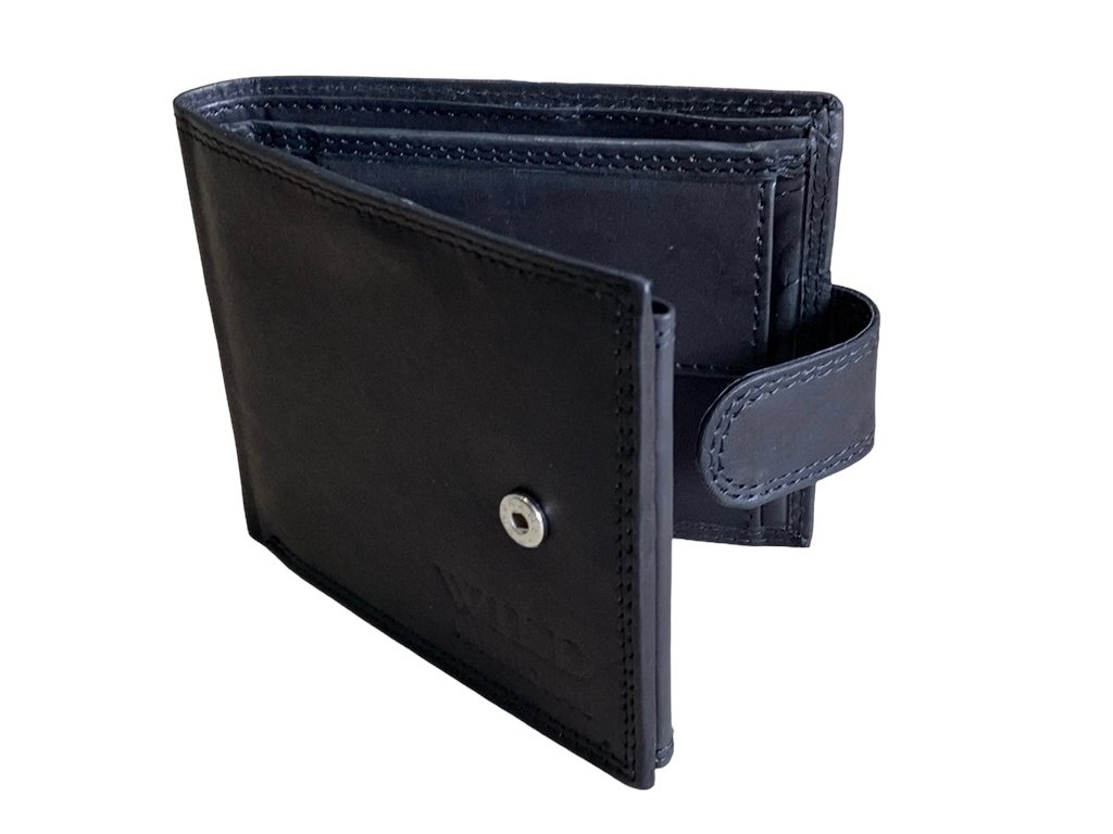 pánská peněženka z pravé kůže v klasické černé barvě s praktickou přezkou